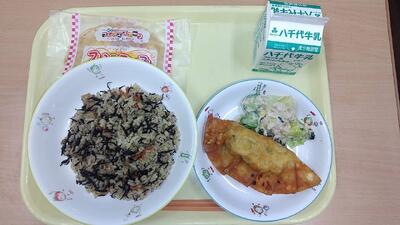 牛乳 ご飯 生揚げの肉みそ煮 大学芋 のり和え