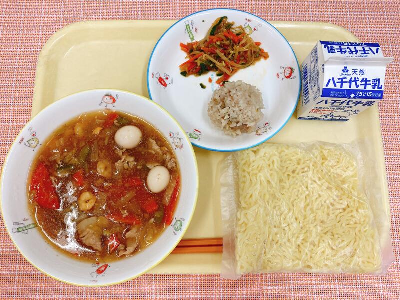 牛乳 あんかけ焼きそば もち米シュウマイ ナムル