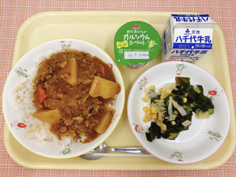 牛乳 ご飯 チキンカレー わかめコーンサラダ ヨーグルト