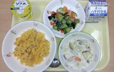 牛乳 キャロットピラフ 秋のシチュー イタリアンサラダ レモンヨーグルト