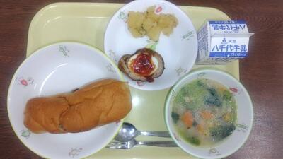 牛乳 ぶどうパン スコッチエッグ じゃがバター ABCスープ