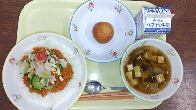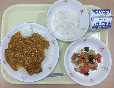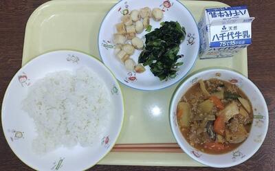 牛乳 ドライカレー 元気サラダ ナタデココのヨーグルト和え