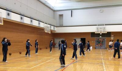 持久走も終わり、バスケットボール、バトミントン、サッカーの授業になりました。