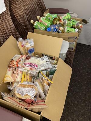お隣車両の中学校は、食料が不足しているそうです。ほんの少しですが、お裾分け。
