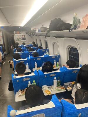 Shinkansen is currently running near Odawara. There was an announcement that the train would arrive at Tokyo Station at 11:20. We will arrive at Gyotoku Station around 12:20. I'm sorry to have caused you so much worry, but the goal is finally in sight. We will leave it up to your family to pick your child up at Gyotoku Station, but the students did a great job, so please take care of them at home.