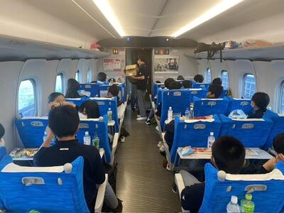 現在、新幹線は小田原付近を走行中です。先ほど東京駅着は11時20分予定とアナウンスがありました。行徳駅へは12時20分ごろ到着予定です。大変ご心配をおかけしましたが、ようやくゴールが見えてきました。行徳駅へのお迎えはご家庭にお任せしますが、生徒たちはよく頑張りましたので、是非お家で労わってあげてください。
