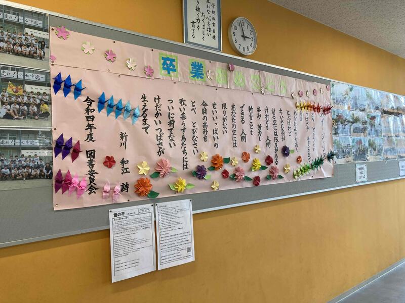 図書委員会が3年生に対するメッセージ掲示を作成してくれました。