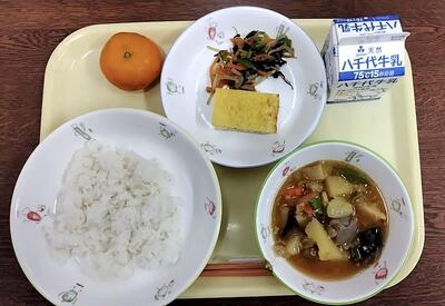 牛乳 じゃがいもの含め煮 擬製豆腐 からし和え 冷凍みかん