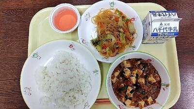牛乳 ご飯 麻婆豆腐 バンサンスー アセロラゼリー