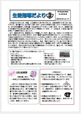 生徒指導だより 3月