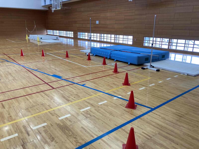 マーカーで助走のコースがわかるようにガイドがなされていました。