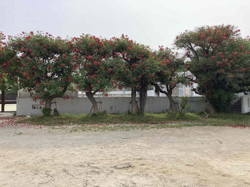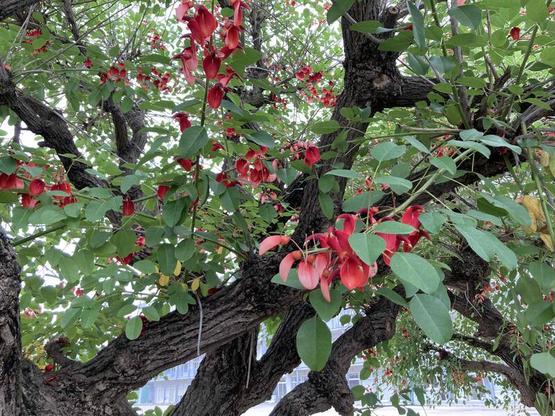 先日紹介したプールの前には、デイゴが赤い花を満開に咲かせています。