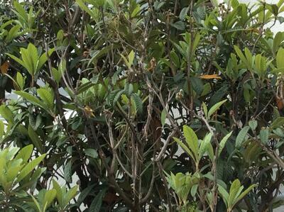 びわの木に珍しい鳥が来ていました。