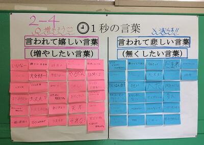 廊下には道徳の授業で「1秒の言葉」