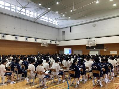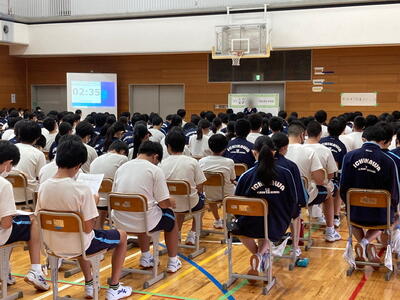 (昨年度は他学年の発表を教室で視聴していましたが、ホールで実際に生徒に聴いてもらいたい思いから2つの学年をホールに入れます。その都合で保護者様の観覧席が非常に限られてしまい大変申し訳ございませんが、ご理解ご協力のほどよろしくお願いいたします。)