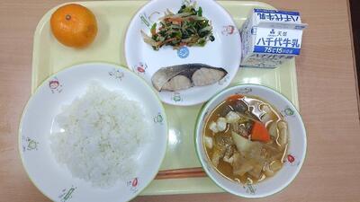 牛乳 ご飯 けんちん汁 いなだの照り焼き ごしき和え みかん