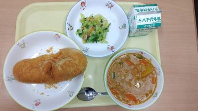 きなこ揚げパン カレーシチュー コールスローサラダ