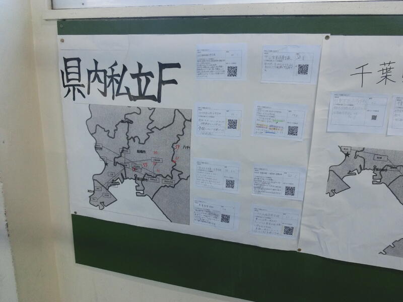 2学年の廊下掲示から、進路についての学習が進んでいる様子がうかがえました。