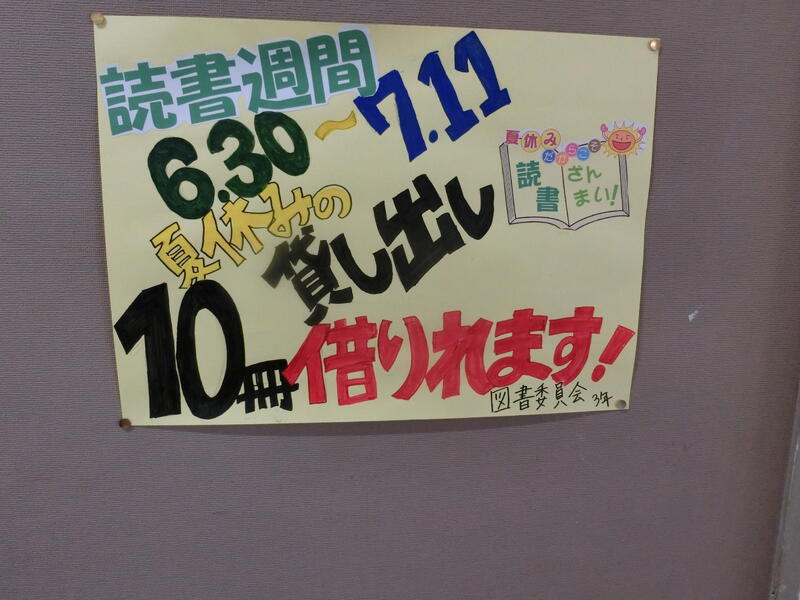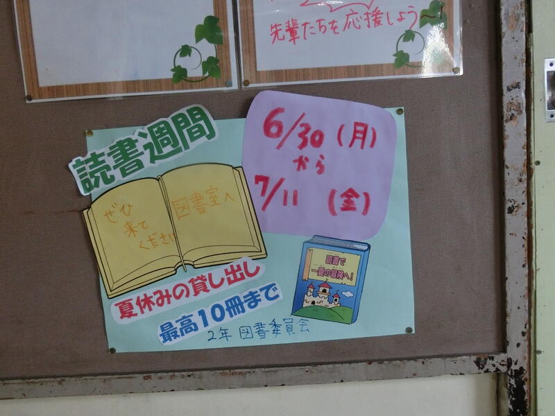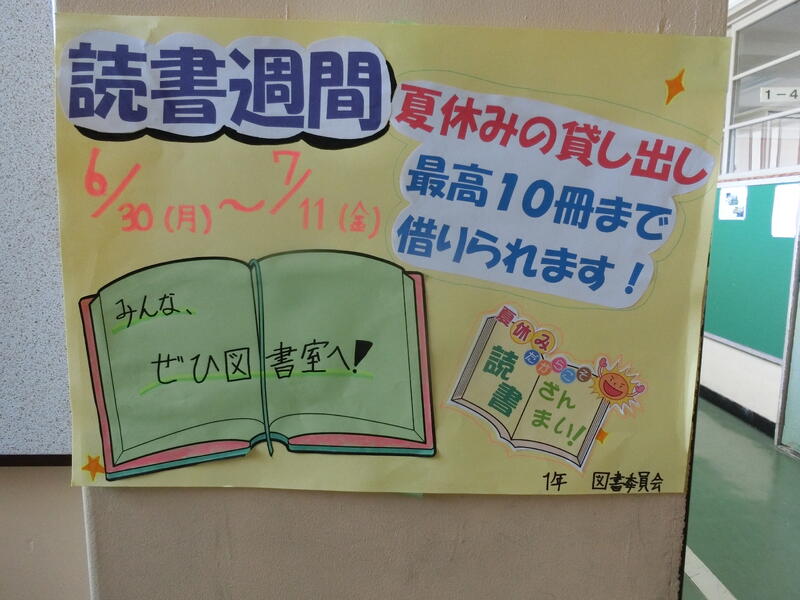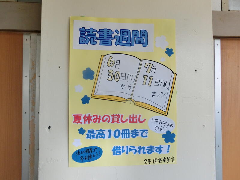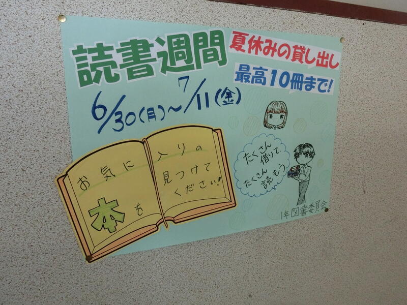 今週末まで読書週間とのことで、図書委員さんがポスター掲示をして呼び掛けてくれています。