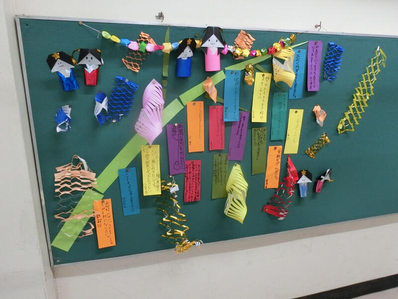ひとみ学級の前掲示板に、様々な折り紙作品が掲示されていました。