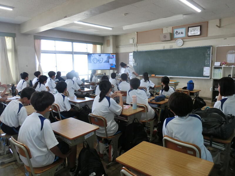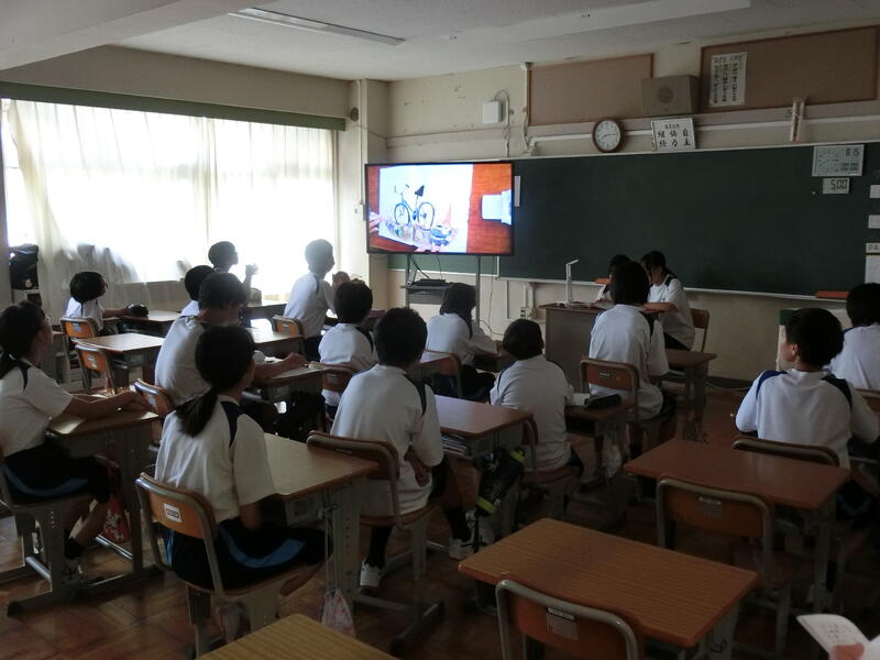 1学年の家庭科の授業で、浴衣の着付けを実際に行っていました。