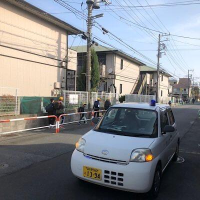 市内で大型犬が逃げている報道を受けて、早朝から青パトと教職員で学区パトロールをしています