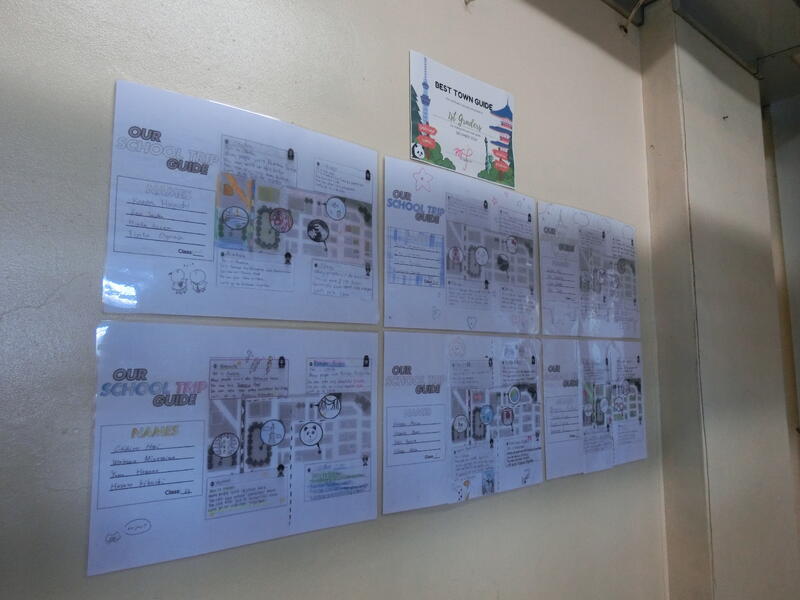 1年生の校外学習にまつわるガイドマップが英語で作成されており、廊下に掲示されていました。