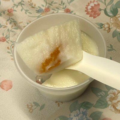 寒天で固めたプリンには、缶詰めみかんが入ります