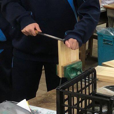 一学年が木材加工の居残り作業をしています