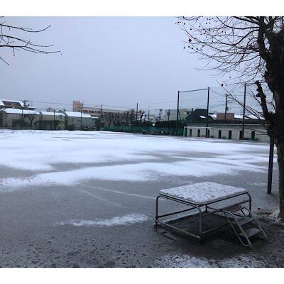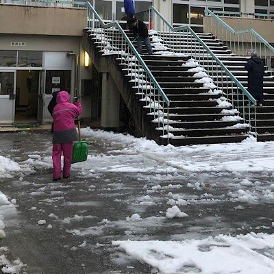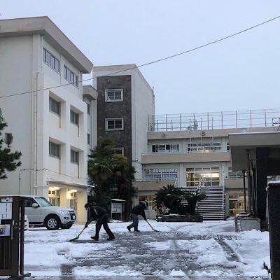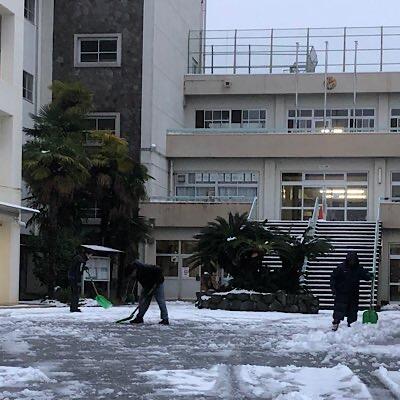 校門周り雪かきをしています