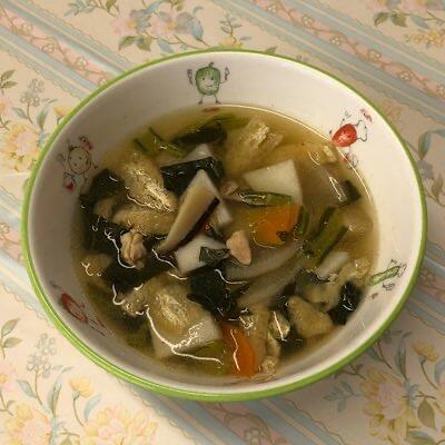 喉ごしなめらかなビーフン、かき卵、野菜が三味一体、味わい深いスープ