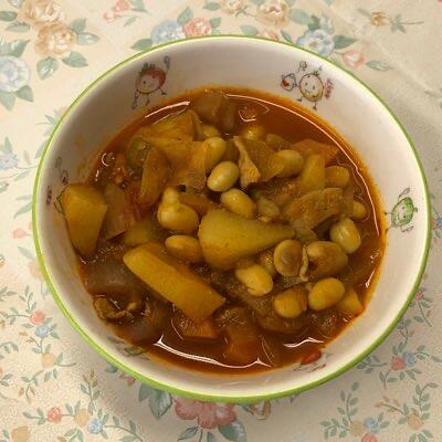 甘辛煮物は、和風スープカレーの佇まい
