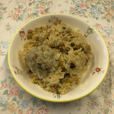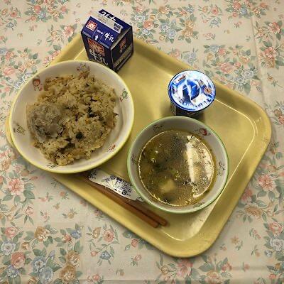 中華きのこごはん 華シュウマイ チンゲン菜のスープ ヨーグルト 牛乳