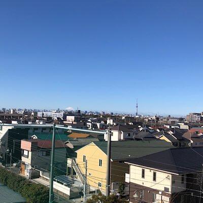 天気良く風のある朝は、スカイツリーと富士山が良く見えます