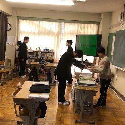 県立入試を受けない生徒で教室整備など、卒業準備活動のち下校