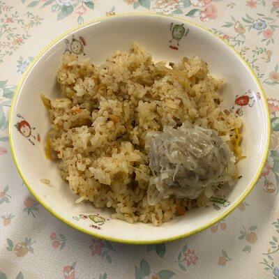 細かく刻んだキムチとタクワン入り炒めごはん