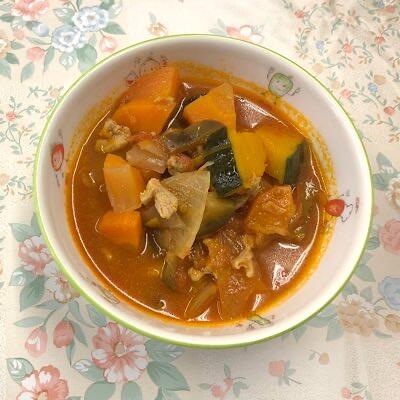 トマトベースのスープに、ベーコンと豊富な野菜たちが入り、