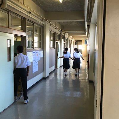訓練放送を聞いて、ろうか、教室に緊張感が走ります