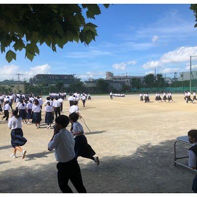 全校生徒が校庭に集合するまで約4分