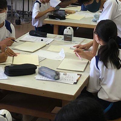 3校時 二学年 理科 光合成の実験結果をまとめています
