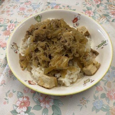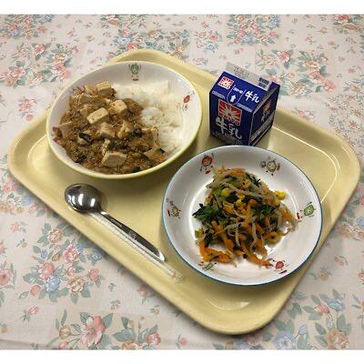 麻婆豆腐丼 ナムル 牛乳