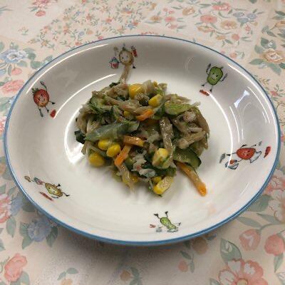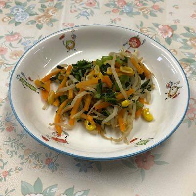 ごま油風味のナムル シャキッとした歯応え、彩り良く仕上がりました