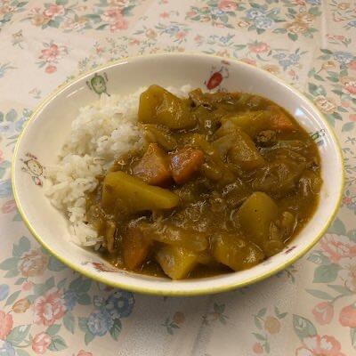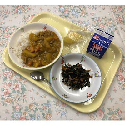 ポークカレー ひじきのマリネ 冷凍りんご 牛乳