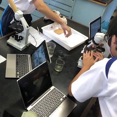 植物と動物の細胞の仕組みの違いを学んでいます