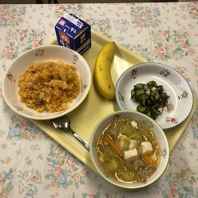 メキシカンライス 鶏肉のハニーマスタード焼き ABCスープ レモンゼリー 牛乳