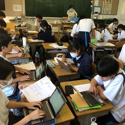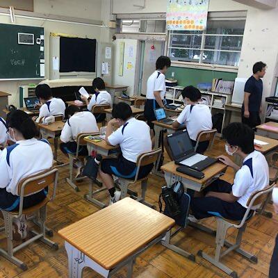 始業式は、暑さを避けオンラインで行っています