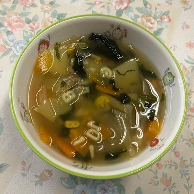 アルファベットの形のマカロニ入りスープ