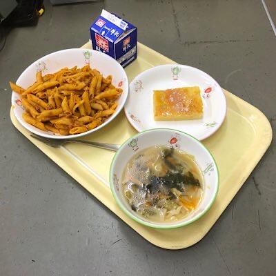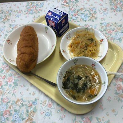 きな粉揚げパン ワンタンスープ 春雨サラダ 牛乳