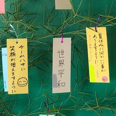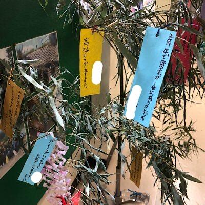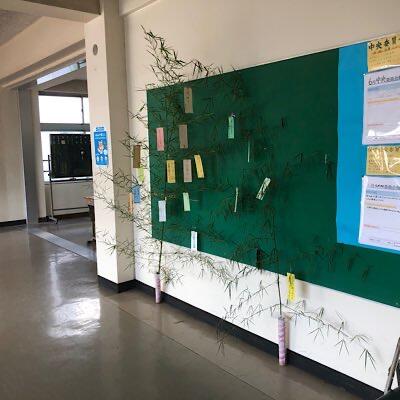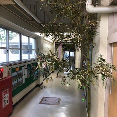 ひとみ、のぞみに続き、職員室前に七夕飾りが登場しました