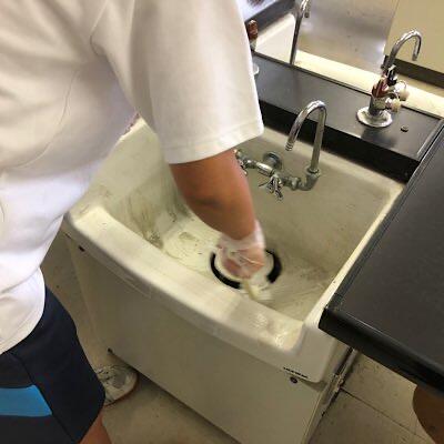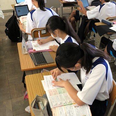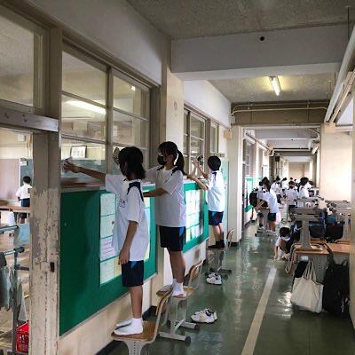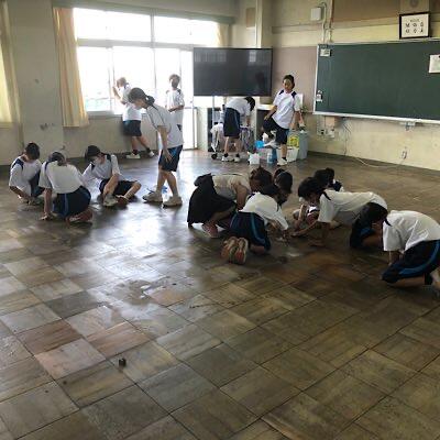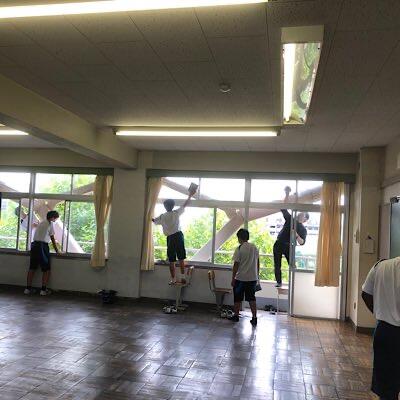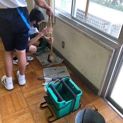 吹奏楽部は、校内清掃と夏休みの宿題チェックをしています
